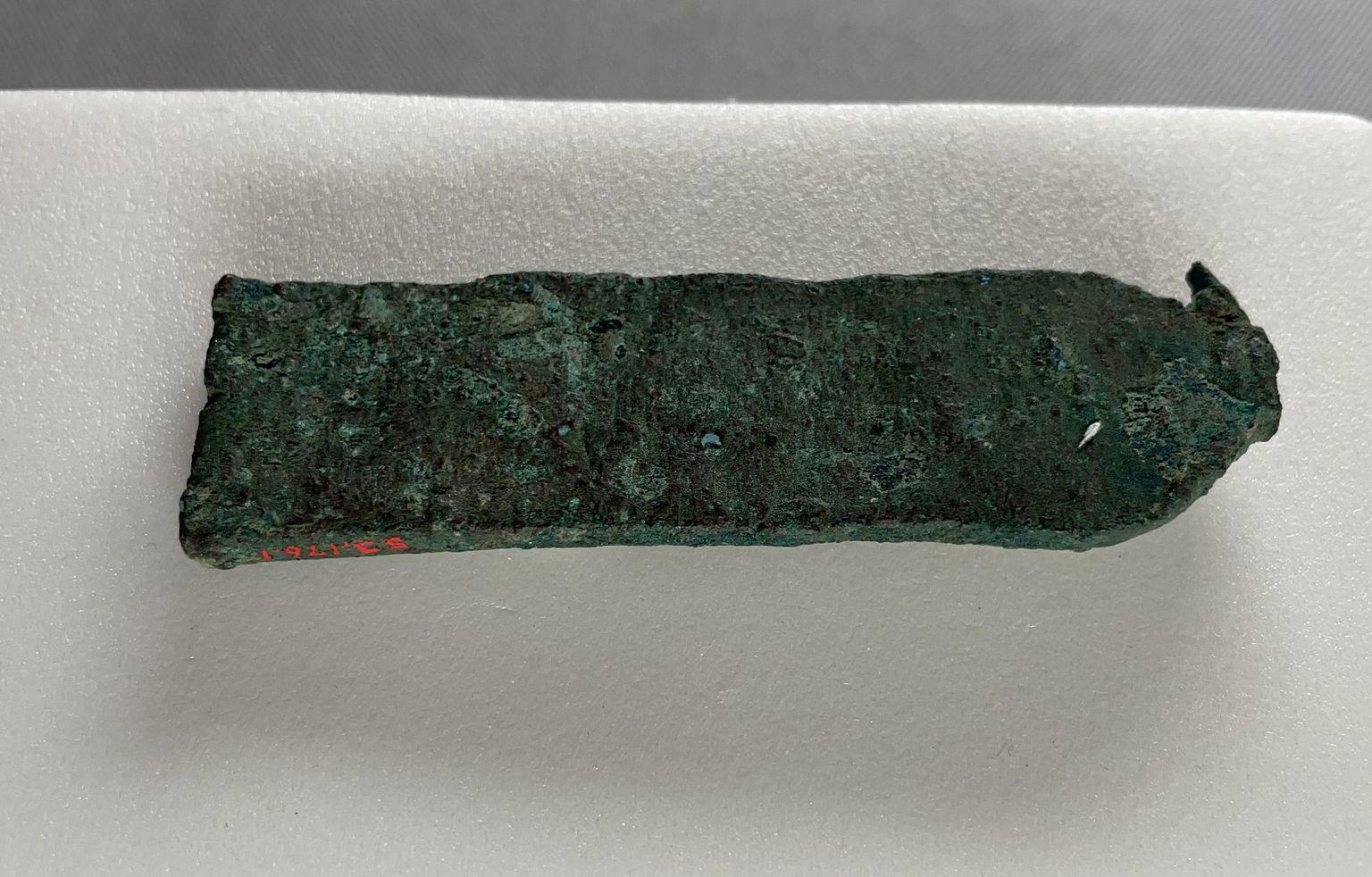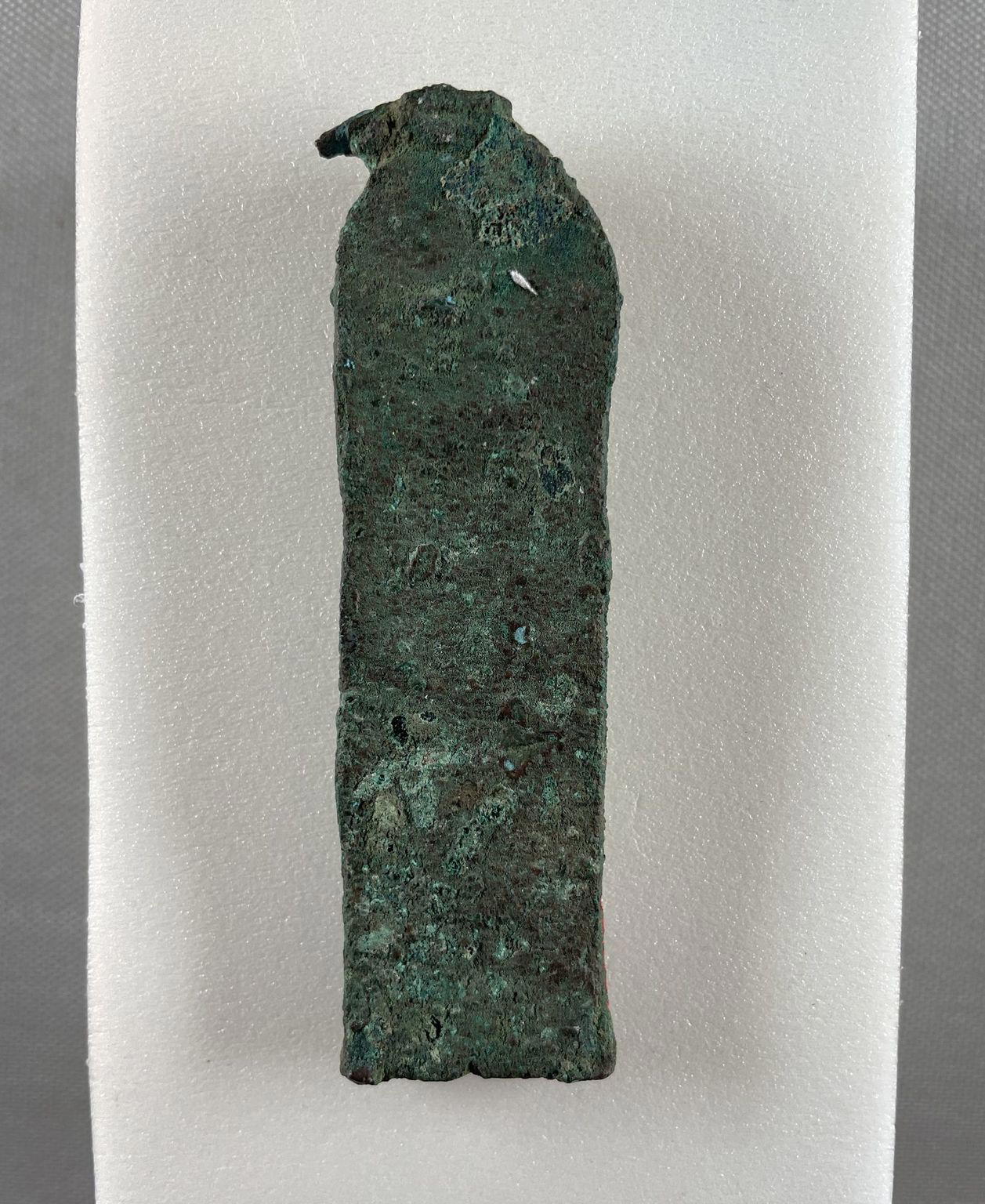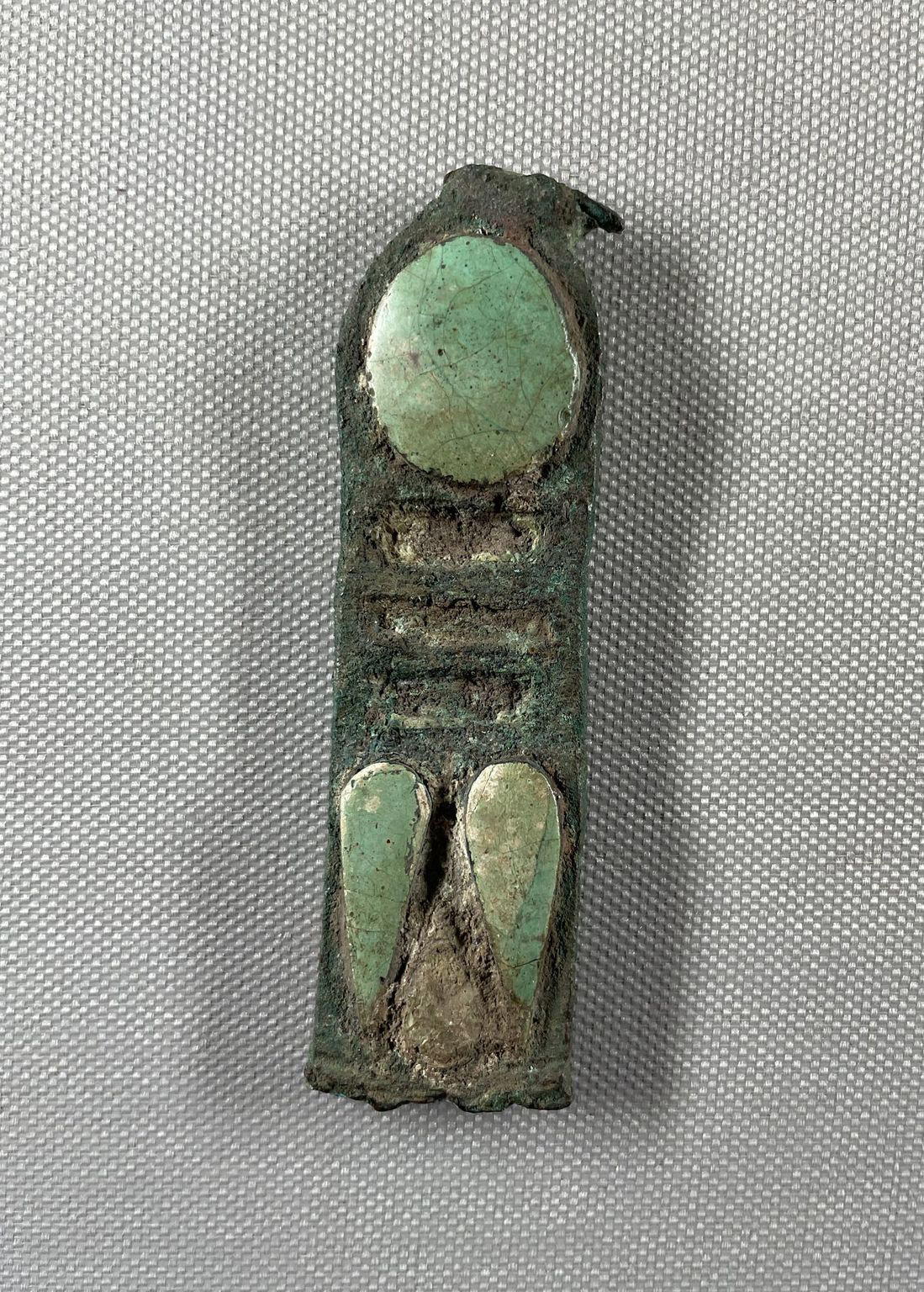 Pendant from an Osiris Flail, 664–30 B.C.E.. Bronze, glass, 3 3/4 × 1 1/8 × 3/8 in. (9.6 × 2.8 × 1 cm). Brooklyn Museum, Anonymous gift, 53.176.1. (Photo: Brooklyn Museum)
