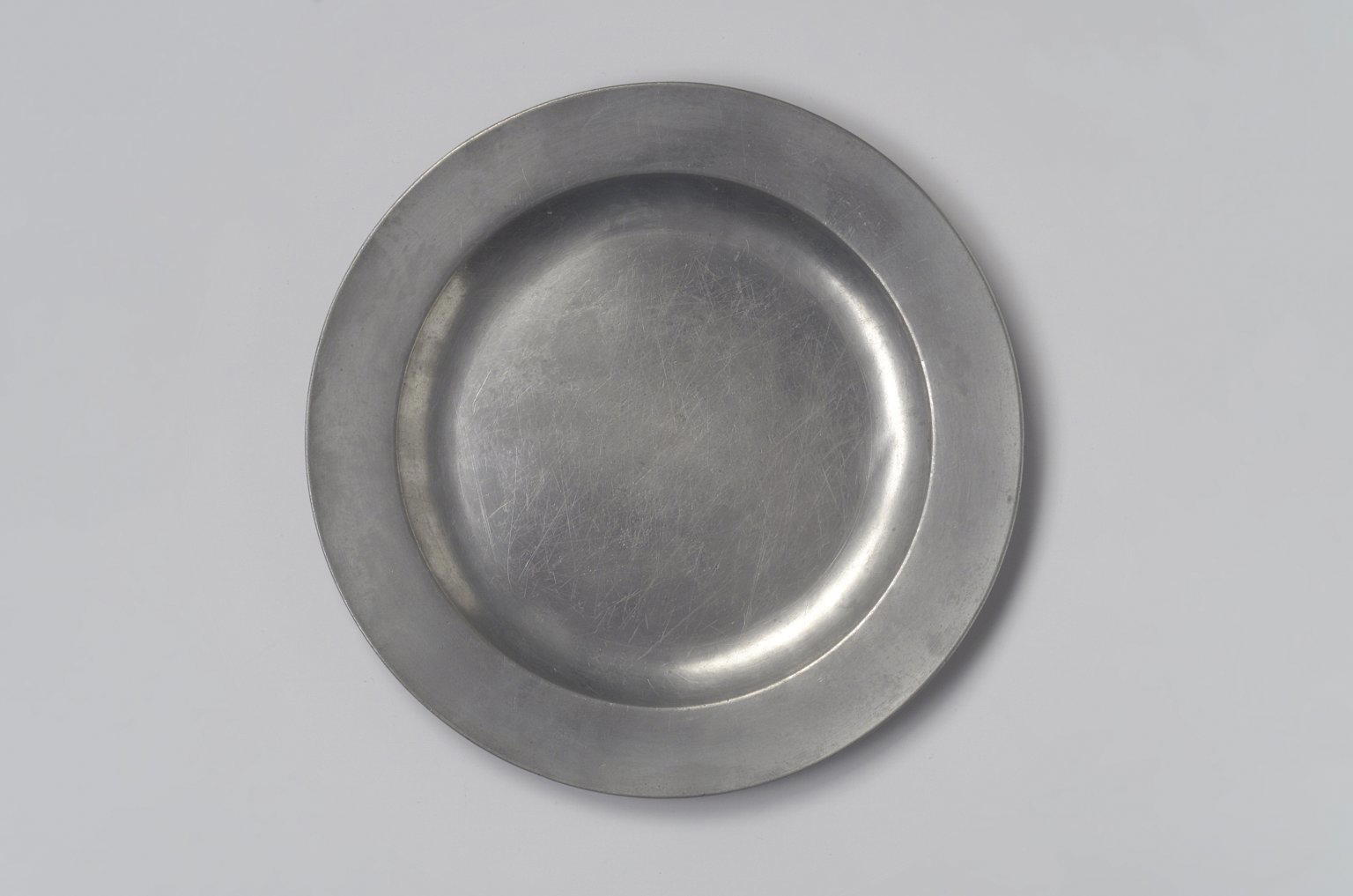 American; John Skinner. Plate, 1760–1790. Pewter, 5/8 x 8 7/8 x 8 7/8 in. (1.6 x 22.5 x 22.5 cm). Brooklyn Museum, Anonymous gift, 42.278.5. (Photo: Brooklyn Museum)
