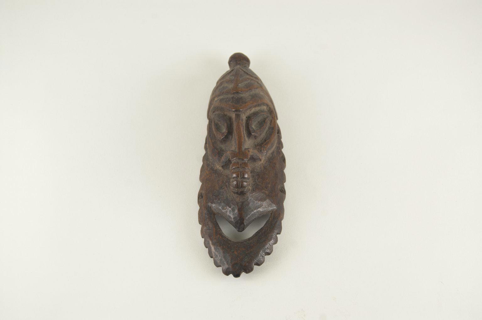 Carved Mask, Wood, 6 1/4 x 1 15/16 in. (15.8 x 5.0 cm). Brooklyn Museum, Gift of Arturo and Paul Peralta-Ramos, 56.6.13. (Photo: Brooklyn Museum)