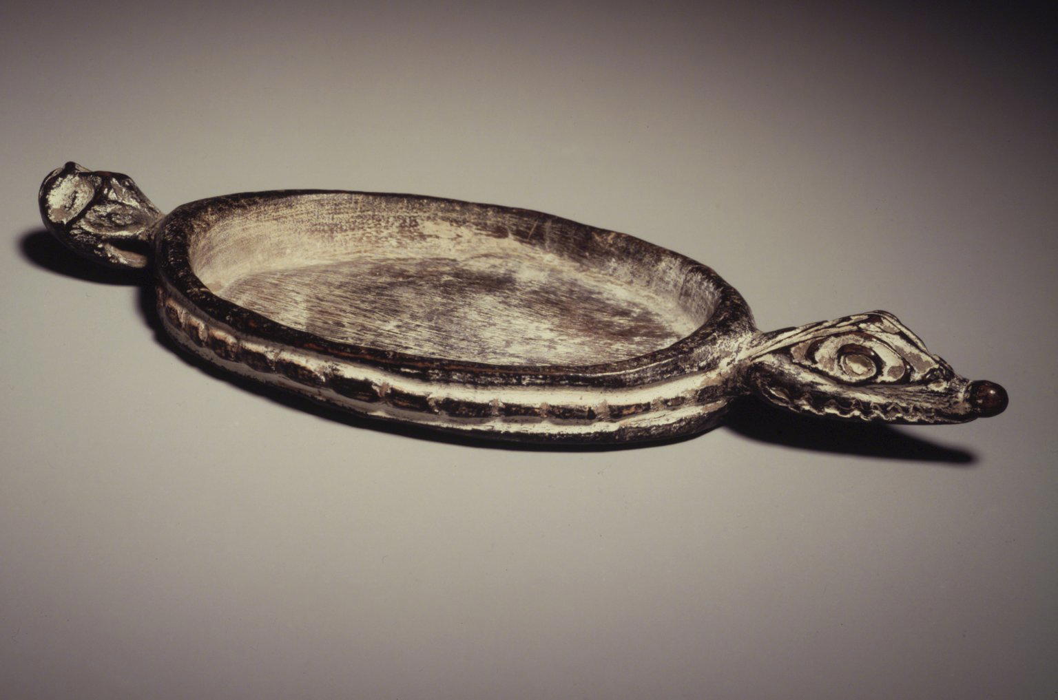Iatmul. Pigment Dish, 20th century. Wood, pigment, 8 x 3 x 1 in. (20.3 x 7.6 x 2.5 cm). Brooklyn Museum, Gift of Arturo and Paul Peralta-Ramos, 56.6.48. (Photo: Brooklyn Museum)
