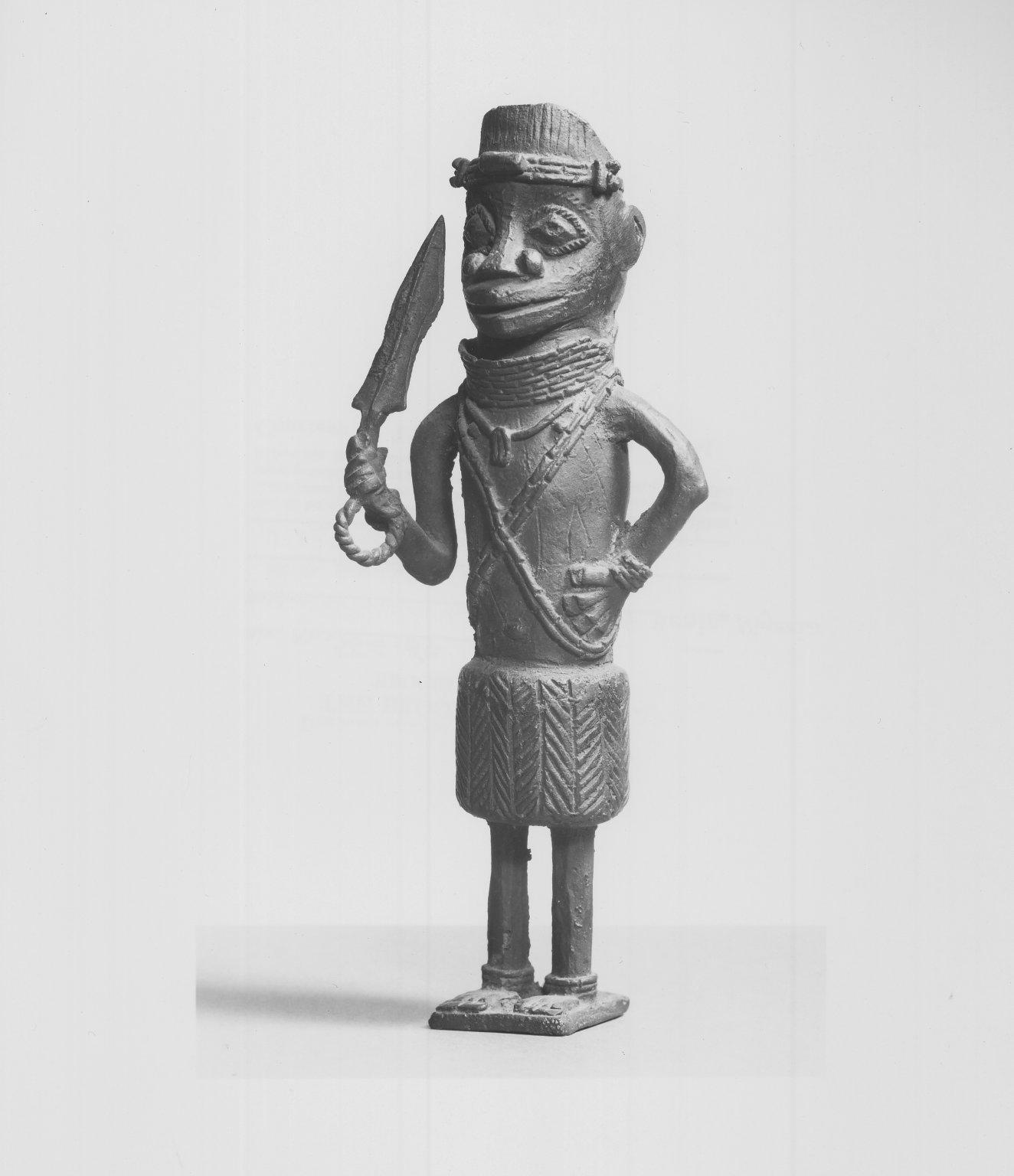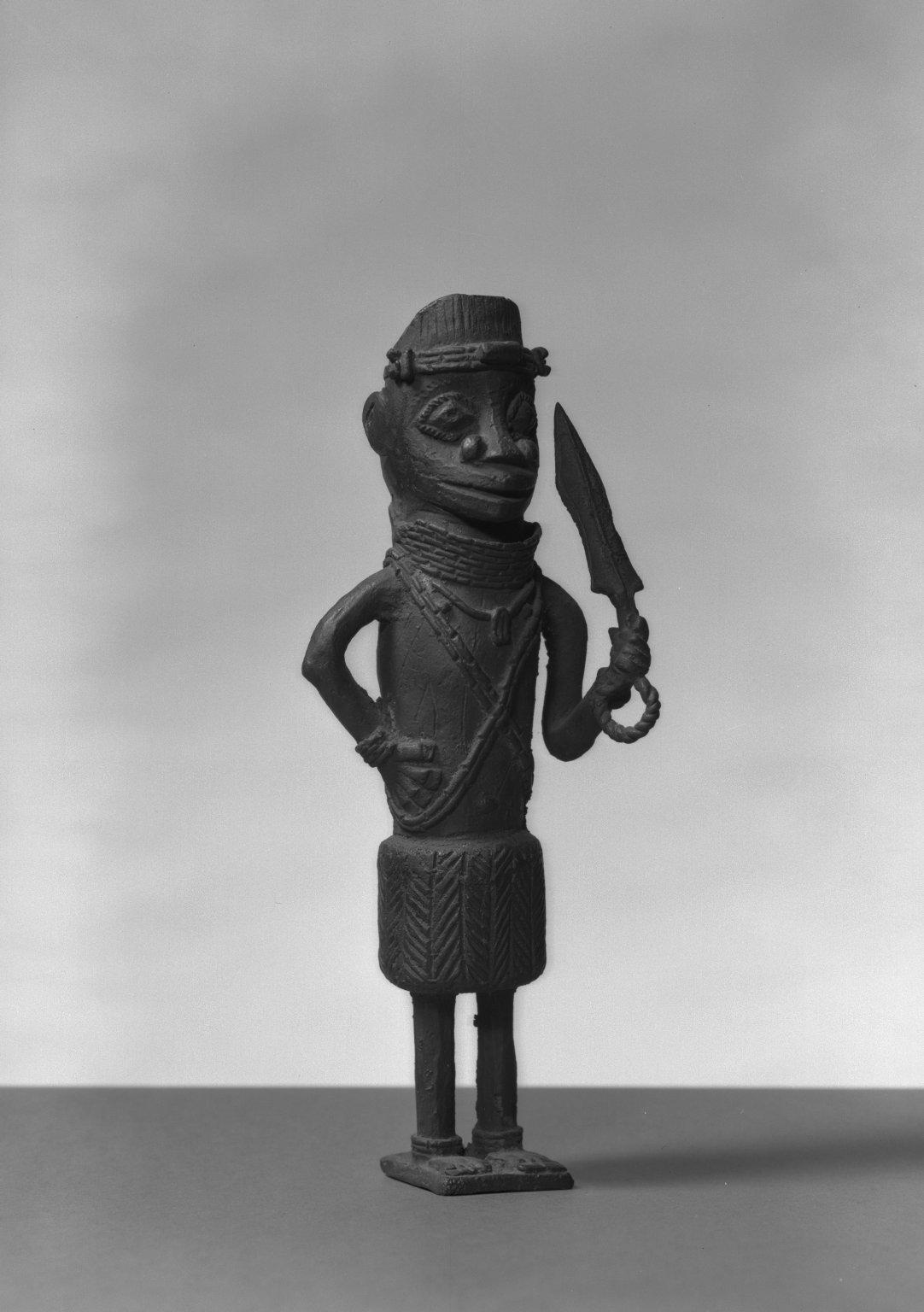 Edo. Standing Male Figure, 19th century. Copper alloy, 8 3/4 × 3 1/8 in. (22.2 × 8 cm). Brooklyn Museum, Gift of Arturo and Paul Peralta-Ramos, 56.6.67. (Photo: Brooklyn Museum)
