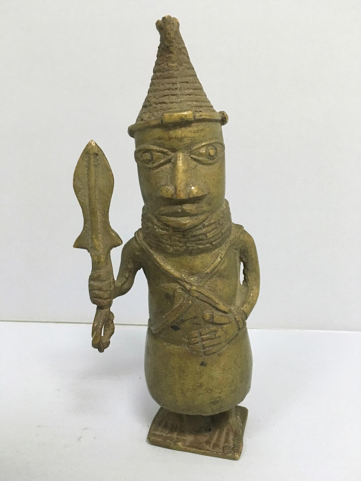 Edo. Standing Figure, 19th or 20th century. Copper alloy, 7 11/16 × 3 3/8 in. (19.5 × 8.5 cm). Brooklyn Museum, Gift of Arturo and Paul Peralta-Ramos, 56.6.75. (Photo: Brooklyn Museum)