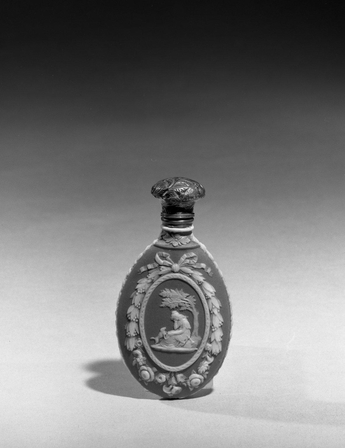Wedgwood and Sons (British, Staffordshire, 1759–present). Scent Bottle, circa 1750 (bottle) circa 1850 (cap). Jasperware (stoneware), 3 1/4 × 1 3/4 in. (8.3 × 4.4 cm). Brooklyn Museum, Gift of Emily Winthrop Miles, 61.199.50a. (Photo: Brooklyn Museum)