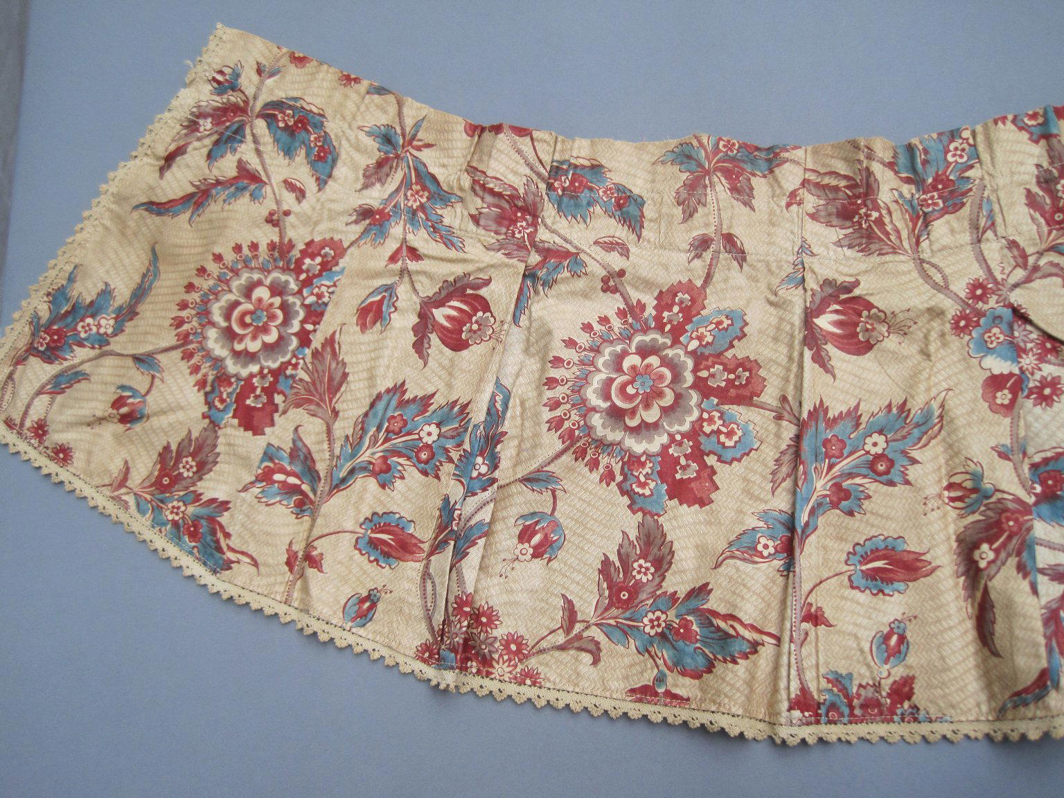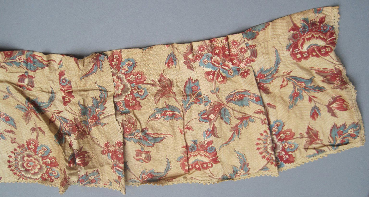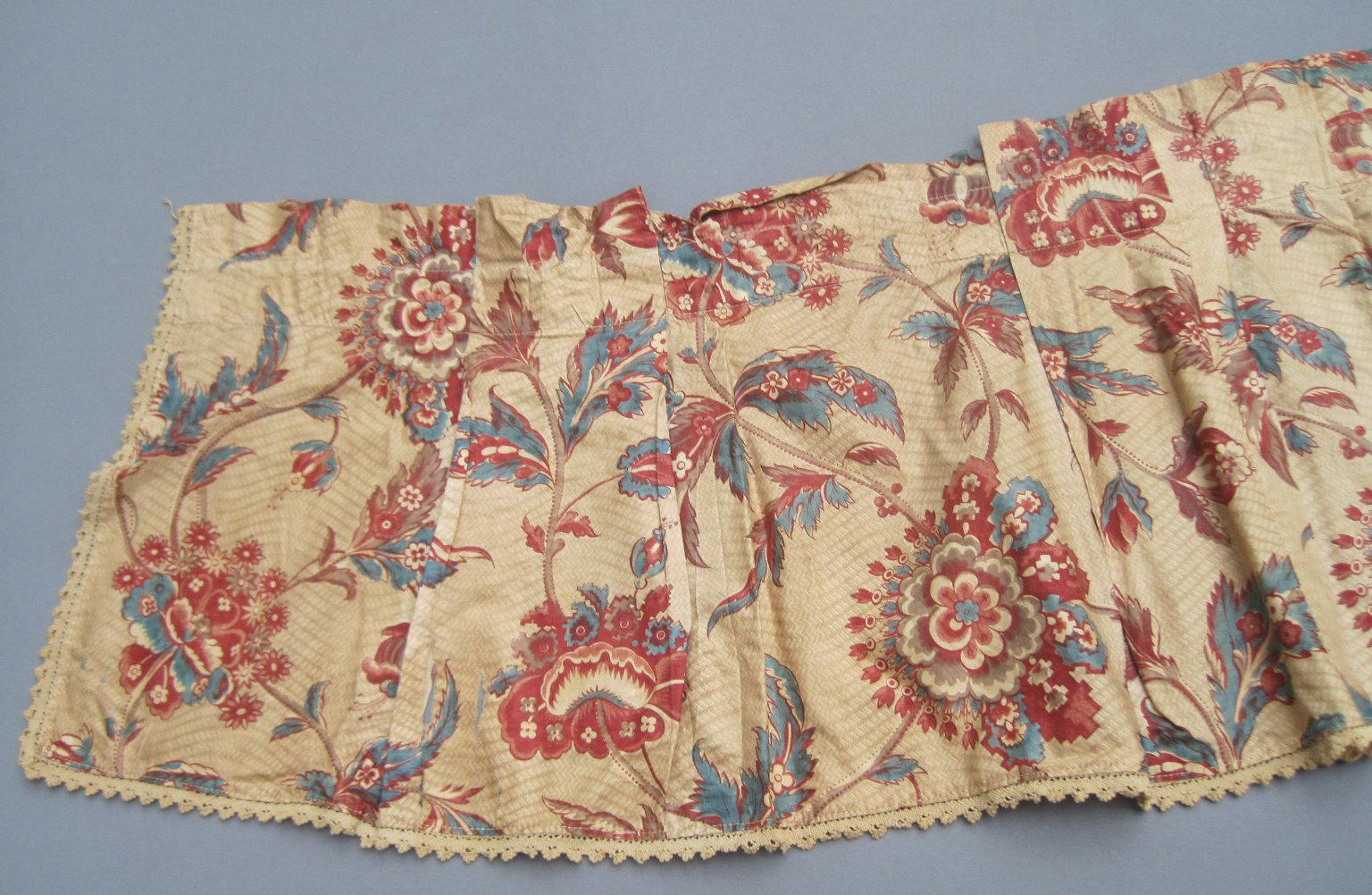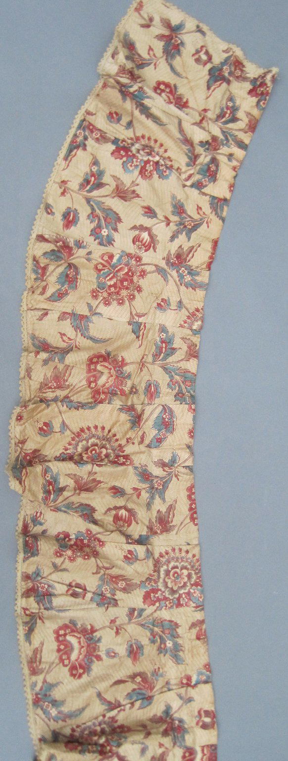 Valances and One Piece of Extra Yardage, fabric ca. 1800; construction probably early 20th century. Cotton, a: 11 1/2 × 110 in. (29.2 × 279.4 cm) b: 11 1/2 × 62 in. (29.2 × 157.5 cm) c: 11 1/2 × 59 in. (29.2 × 149.9 cm) d: 11 1/2 × 45 in. (29.2 × 114.3 cm) e: 11 1/2 × 49 in. (29.2 × 124.5 cm) f: 11 1/2 × 48 in. (29.2 × 121.9 cm) g: 11 1/2 × 48 in. (29.2 × 121.9 cm) h: 25 × 75 1/2 in. (63.5 × 191.8 cm). Brooklyn Museum, Gift of Mae Schenck, 63.4.19a-h. (Photo: Brooklyn Museum)