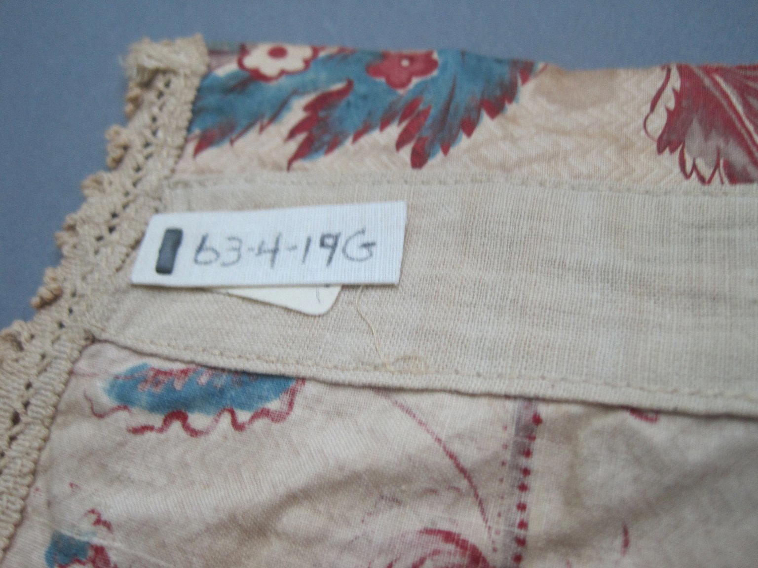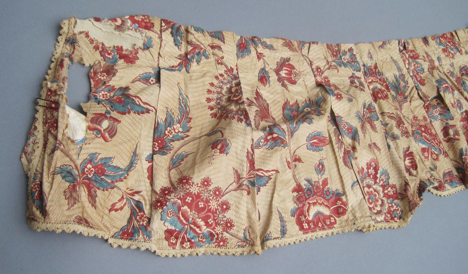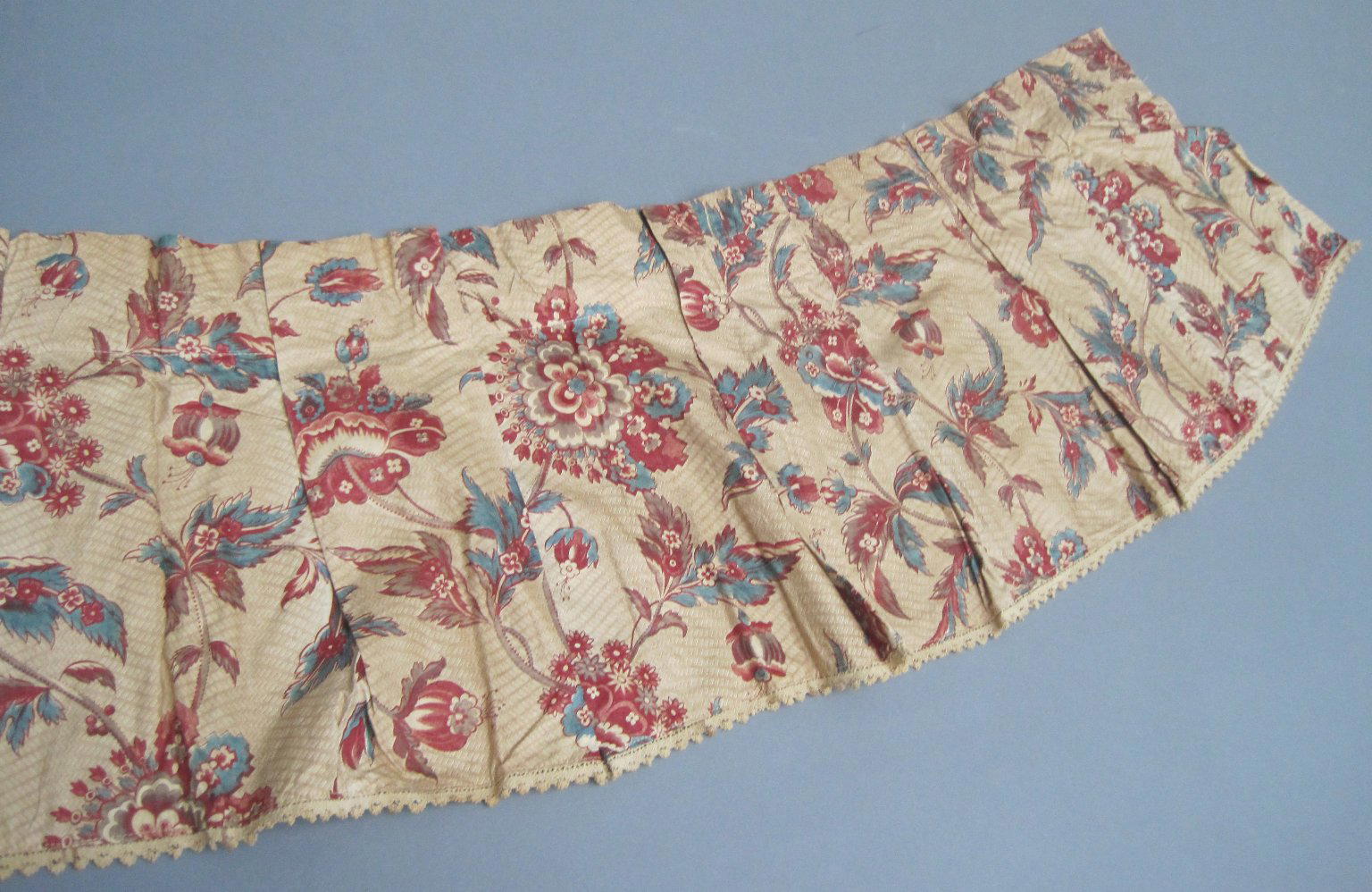 Valances and One Piece of Extra Yardage, fabric ca. 1800; construction probably early 20th century. Cotton, a: 11 1/2 × 110 in. (29.2 × 279.4 cm) b: 11 1/2 × 62 in. (29.2 × 157.5 cm) c: 11 1/2 × 59 in. (29.2 × 149.9 cm) d: 11 1/2 × 45 in. (29.2 × 114.3 cm) e: 11 1/2 × 49 in. (29.2 × 124.5 cm) f: 11 1/2 × 48 in. (29.2 × 121.9 cm) g: 11 1/2 × 48 in. (29.2 × 121.9 cm) h: 25 × 75 1/2 in. (63.5 × 191.8 cm). Brooklyn Museum, Gift of Mae Schenck, 63.4.19a-h. (Photo: Brooklyn Museum)