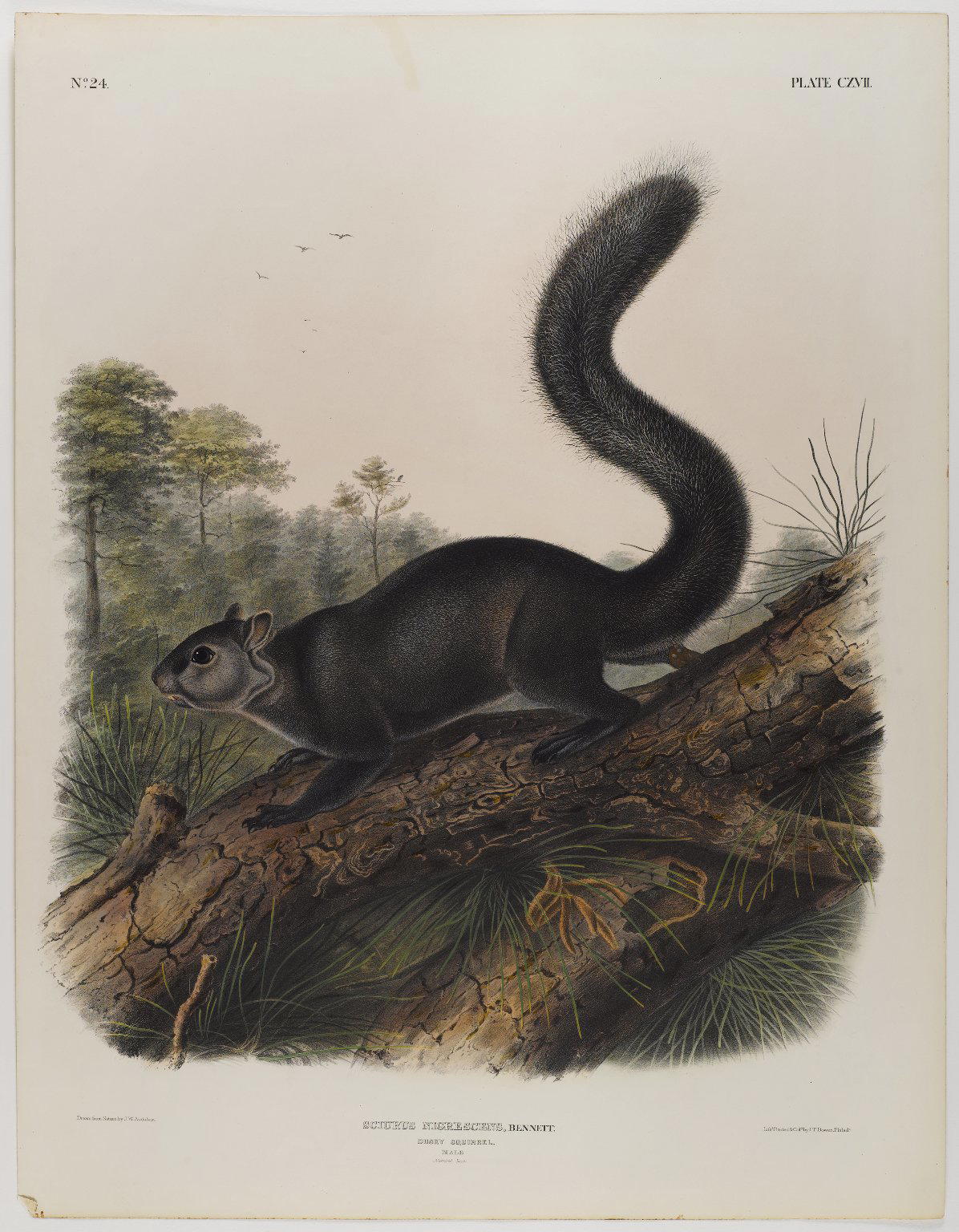 John James Audubon (American, born Haiti, 1785–1851). Dusky Squirrel, Lithograph, 27 x 21 in. (68.6 x 53.3 cm). Brooklyn Museum, Gift of the Estate of Emily Winthrop Miles, 64.98.62. (Photo: Brooklyn Museum)