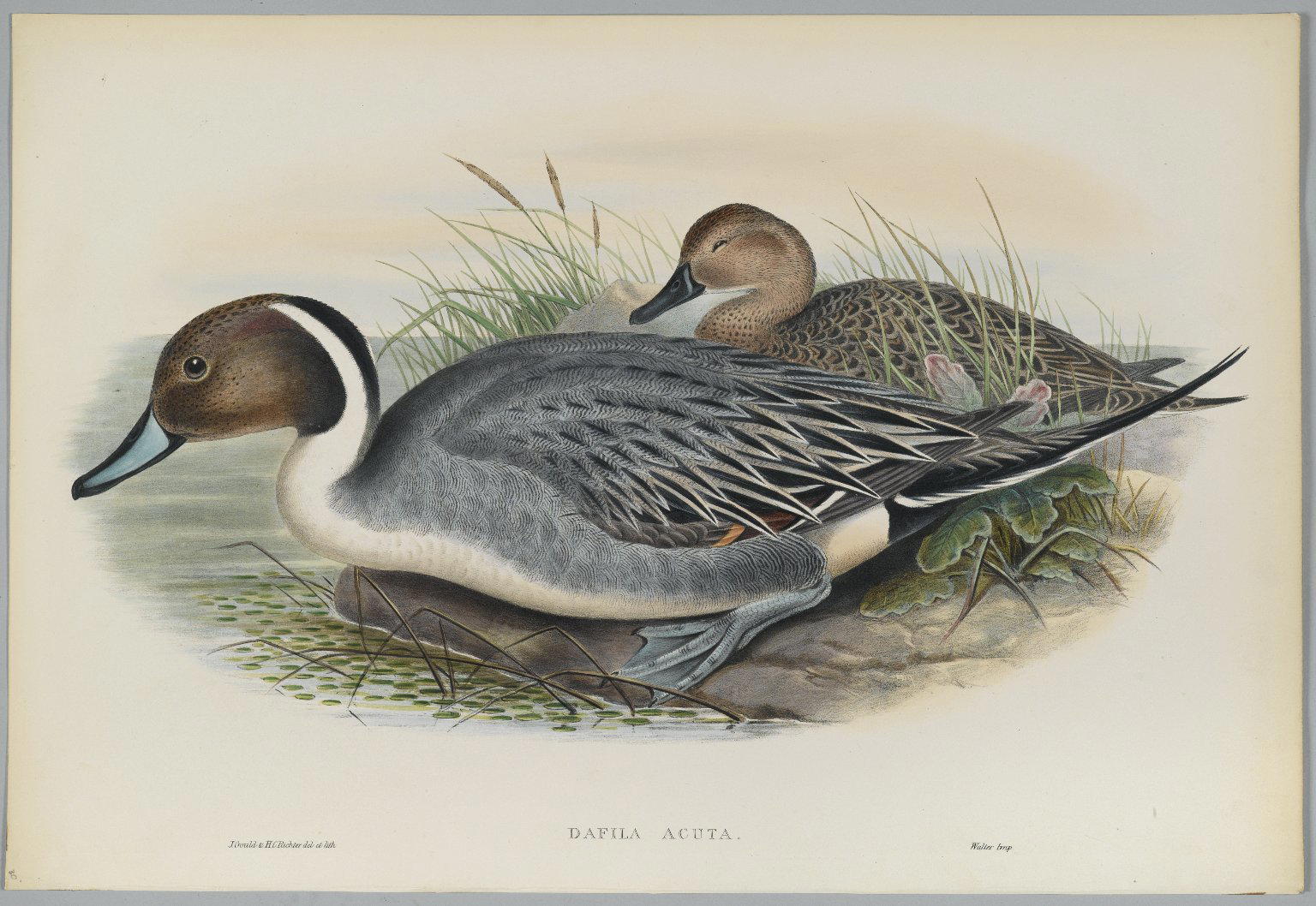 John Gould (British, 1804–1881). Dafila Avuta: Ducks, Lithograph on wove paper, Sheet: 21 1/4 x 14 1/2 in. (54 x 36.8 cm). Brooklyn Museum, Gift of the Estate of Emily Winthrop Miles, 64.98.138. (Photo: Brooklyn Museum)