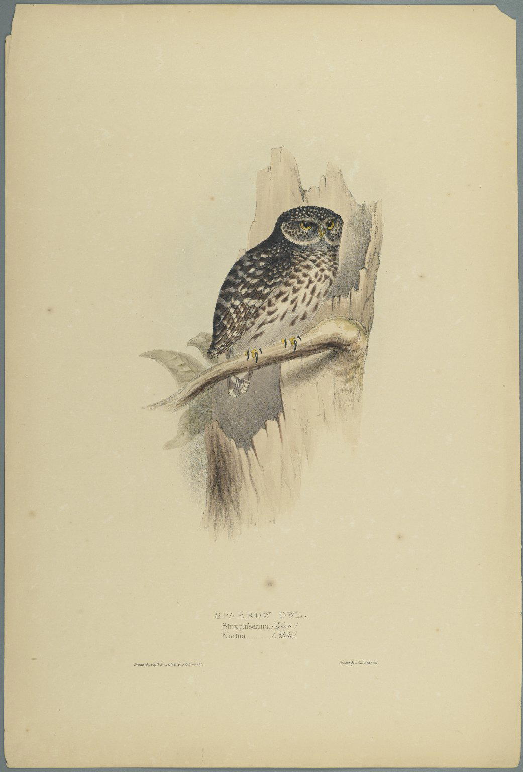 John Gould (British, 1804–1881). Strix Pafsernia - Noctua, Lithograph on wove paper, Sheet: 21 3/16 x 14 1/2 in. (53.8 x 36.8 cm). Brooklyn Museum, Gift of the Estate of Emily Winthrop Miles, 64.98.151. (Photo: Brooklyn Museum)