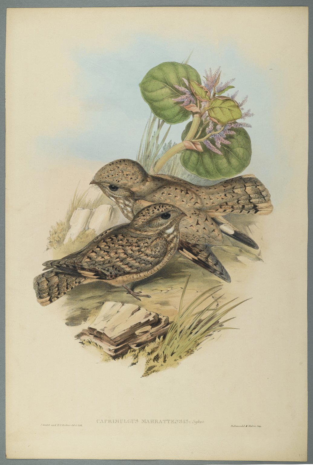 John Gould (British, 1804–1881). Caprimulgus Mahrattensis, Nightjar, Lithograph on wove paper, Sheet: 21 7/8 x 14 1/2 in. (55.6 x 36.8 cm). Brooklyn Museum, Gift of the Estate of Emily Winthrop Miles, 64.98.159. (Photo: Brooklyn Museum)