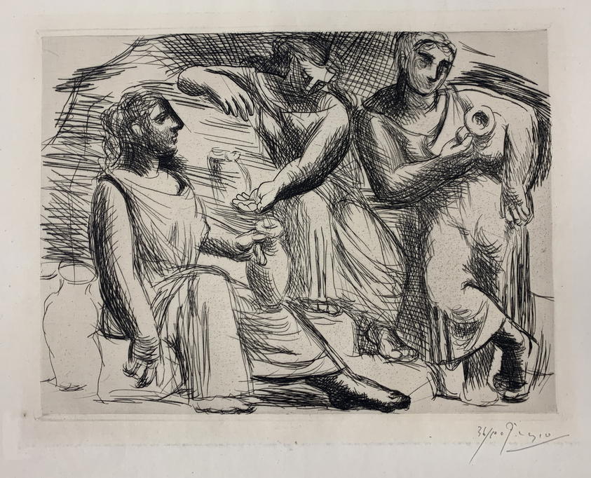 Pablo Picasso (Spanish, 1881–1973); Spanish. La Source, 1921. Dry point and engraving on zinc printed on laid paper, Sheet: 17 3/4 x 13 1/2 in. (45.1 x 34.3 cm) Image: 7 x 9 3/8 in. (17.8 x 23.8 cm). Brooklyn Museum, Gift of The Louis E. Stern Foundation, Inc., 64.101.293. (Photo: Brooklyn Museum)