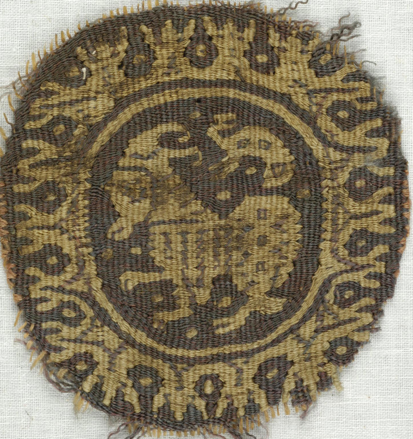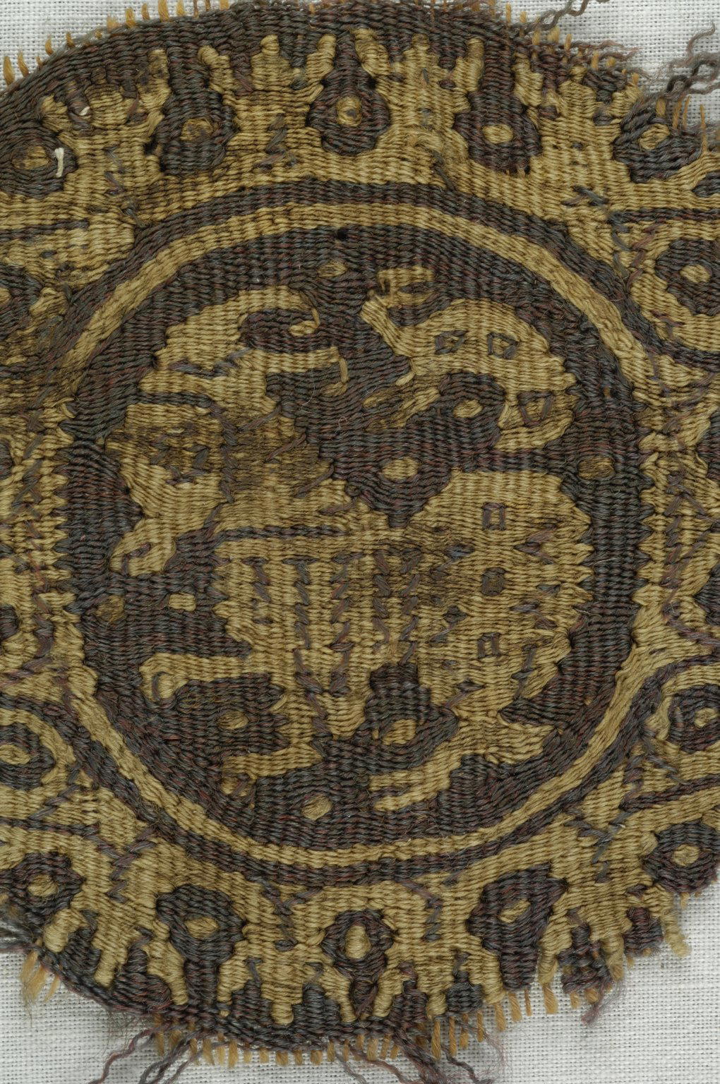 Coptic. Roundel with Animal Decoration, 5th–7th century C.E.. Wool, 3 x 4 in. (7.6 x 10.2 cm). Brooklyn Museum, Gift of Adelaide Goan, 64.114.282. (Photo: Brooklyn Museum (in collaboration with Index of Christian Art, Princeton University))