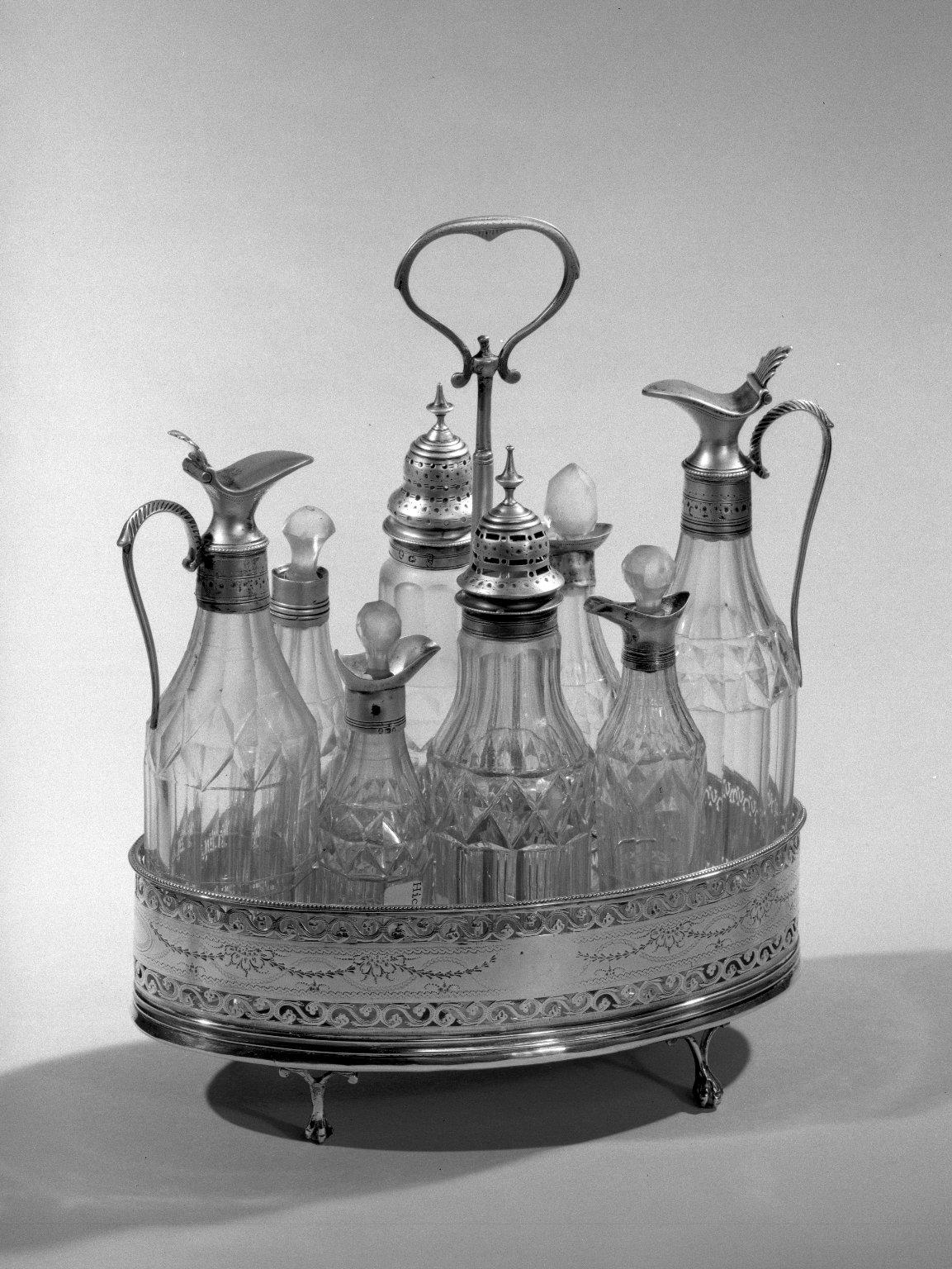 Hester Bateman (English, active in London, 1774–1789). Set of Casters on Stand, ca.1790. Silver, 10 1/2 in. (26.7 cm). Brooklyn Museum, Gift of Mr. and Mrs. Frederick B. Hicks, 64.152.10a-k. (Photo: Brooklyn Museum)