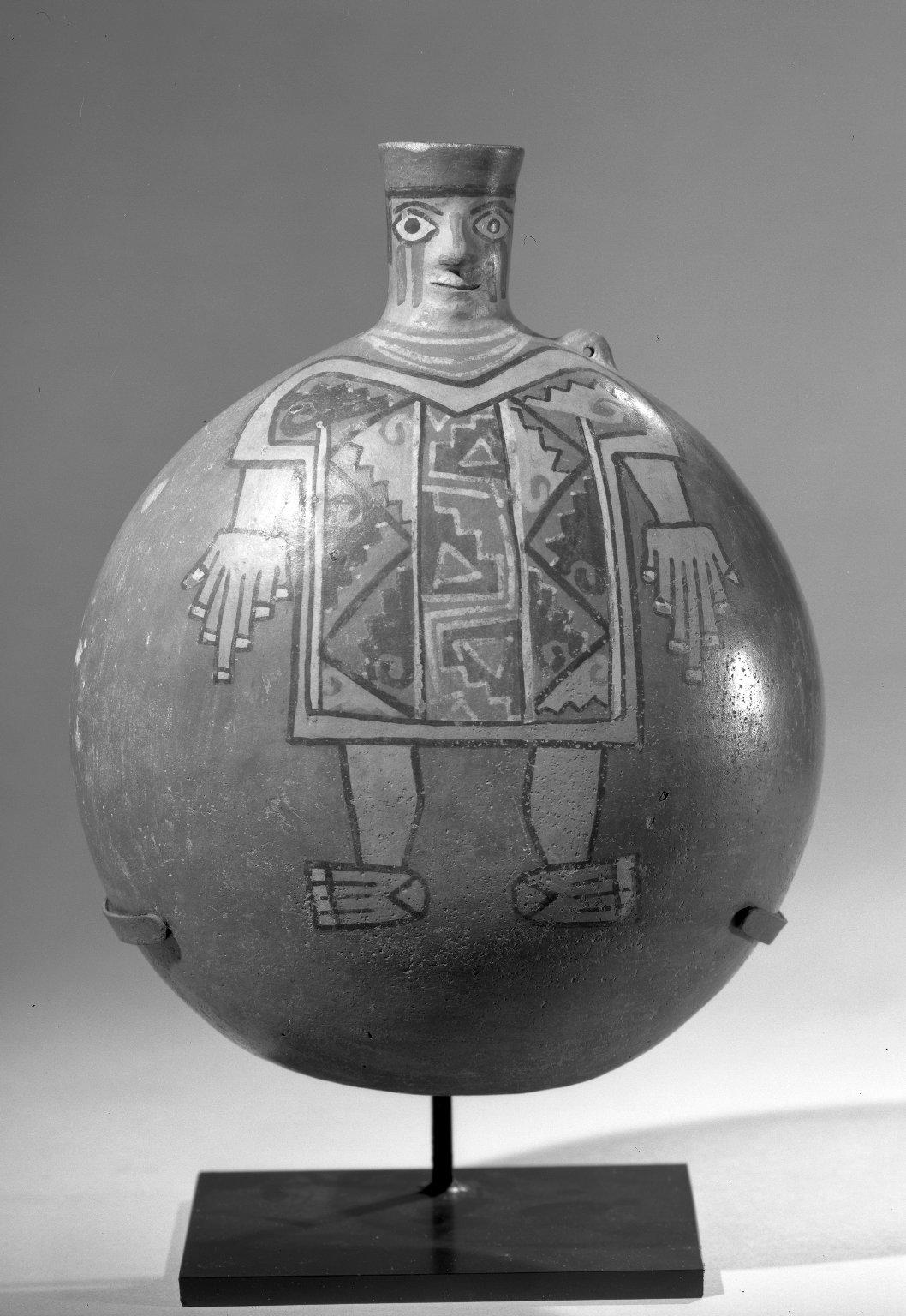 Wari. Face-Neck Jar, 600–1100. Ceramic, slip, pigment, 9 x 6 1/4 x 4 1/8 in. (22.9 x 15.9 x 10.5 cm). Brooklyn Museum, Ella C. Woodward Memorial Fund , 65.205. (Photo: Brooklyn Museum)