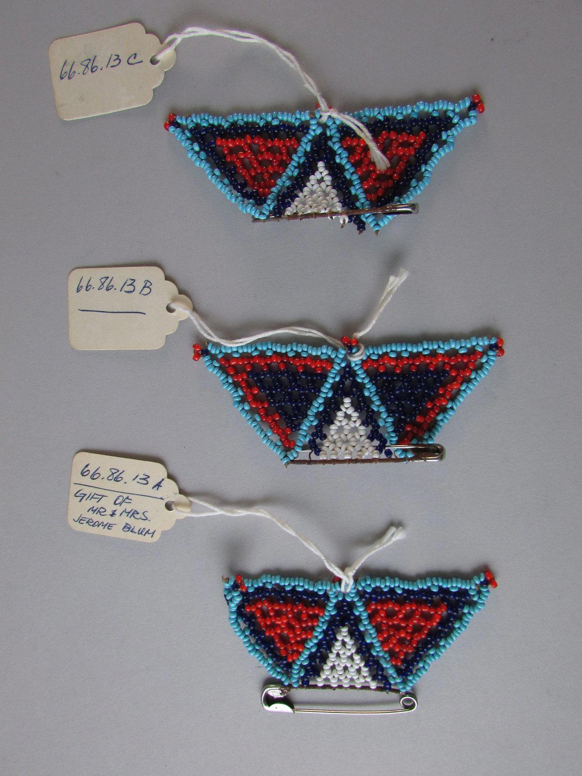 Possibly Zulu. Three Brooches, early to mid 20th century. Glass beads, safety pin, 3 1/2 x 1 3/4in. (8.9 x 4.4cm) safety pin: 1 3/4in. (4.4cm). Brooklyn Museum, Gift of Mr. and Mrs. Jerome Blum, 66.86.13a-c. (Photo: Brooklyn Museum)