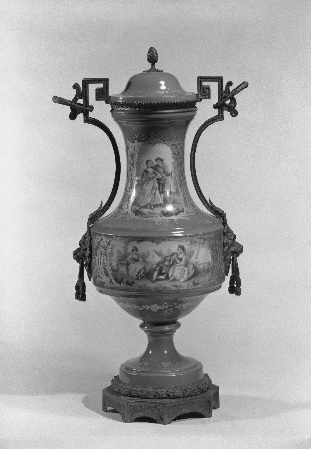 Sevres Vase, One of Pair, ca. 1860–1880. Porcelain, brass, 23 1/2 x 6 1/4 in. (59.7 x 15.9 cm). Brooklyn Museum, Gift of Josephine and Henrietta Walker, 66.115.1. (Photo: Brooklyn Museum)