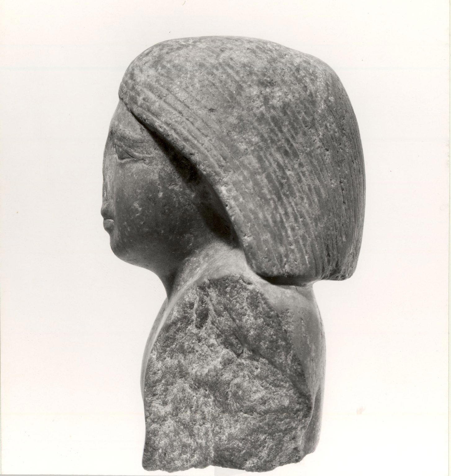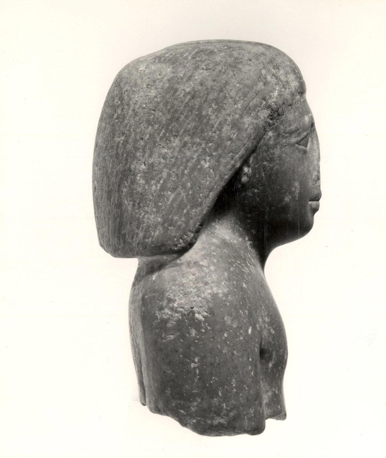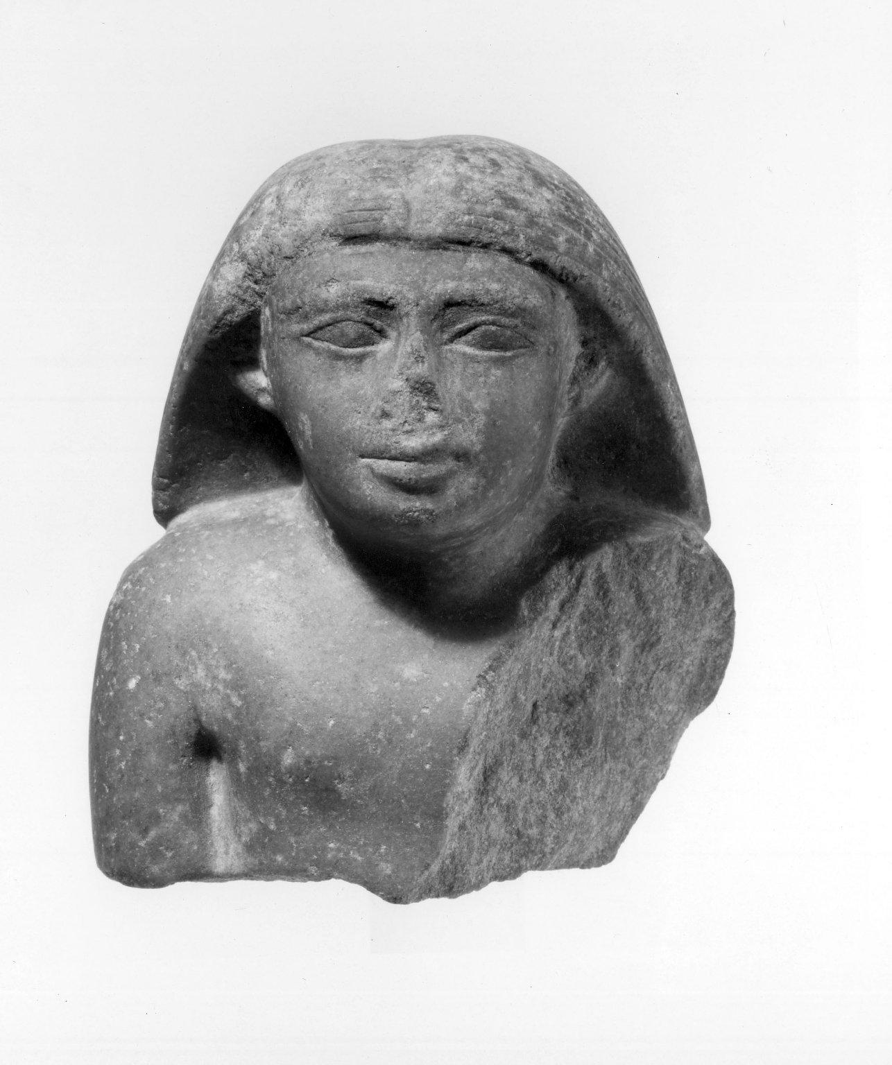 Bust of a Man, ca. 2338–2298 B.C.E.. Quartzite, 4 5/8 × 4 1/16 × 2 13/16 in. (11.8 × 10.3 × 7.2 cm). Brooklyn Museum, Charles Edwin Wilbour Fund, 67.69.1. (Photo: Brooklyn Museum)