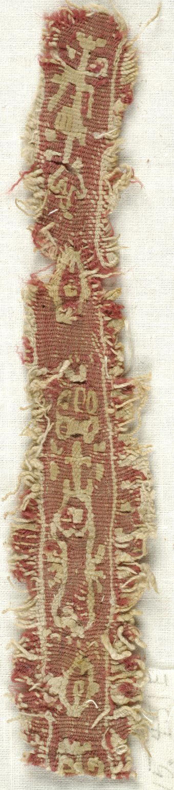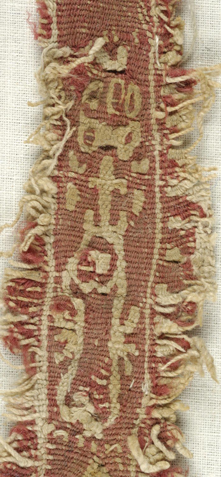 Coptic. Band Fragment with Botanical Decoration, 5th–6th century C.E.. Flax, wool, 1 x 7 in. (2.5 x 17.8 cm). Brooklyn Museum, Gift of the Egypt Exploration Fund, 15.451e. (Photo: Brooklyn Museum (in collaboration with Index of Christian Art, Princeton University))