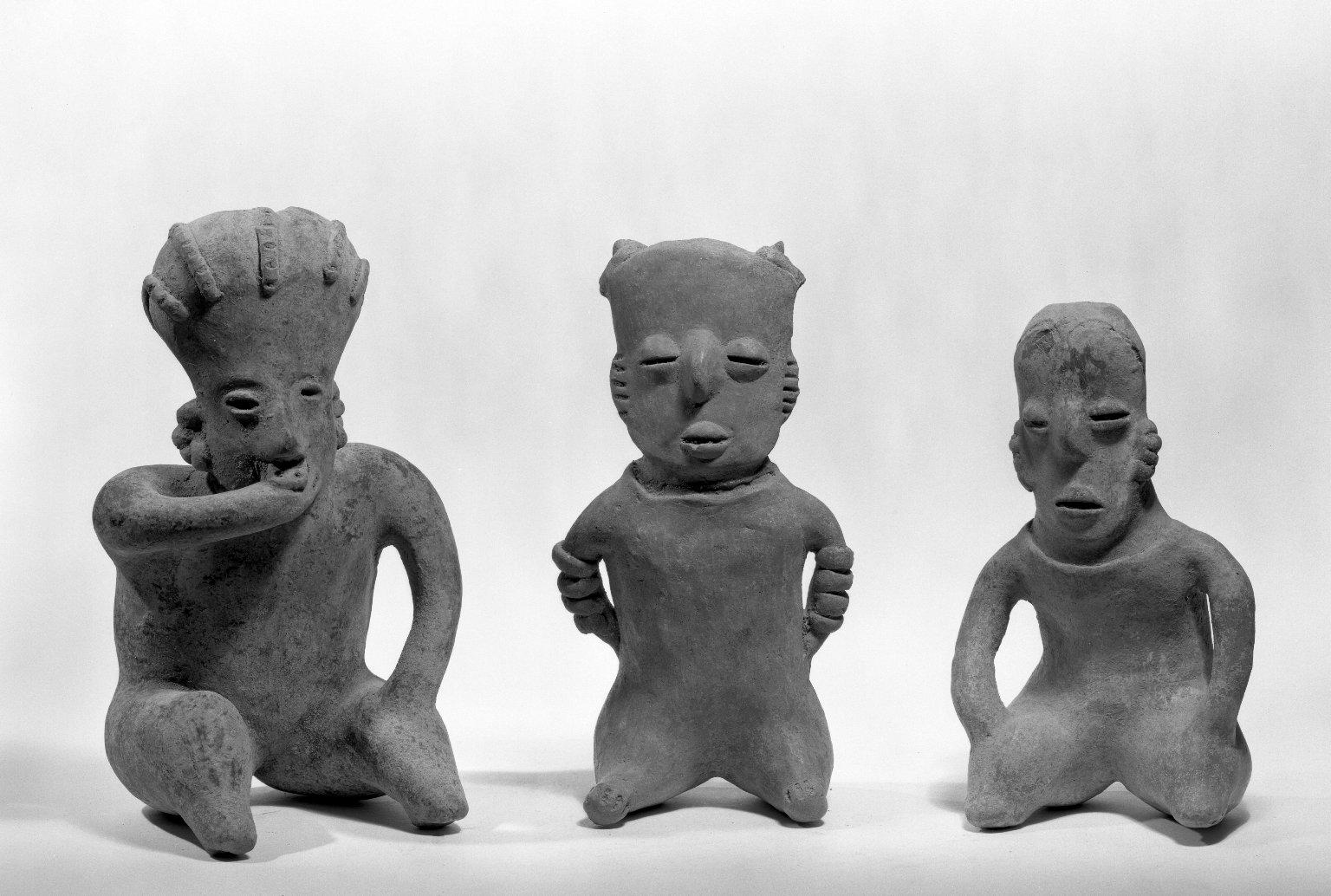 Nayarit. Seated Figure, ca. 300 B.C.E.–400 C.E.. Ceramic, 8 x 4 1/4 x 2 3/4 in. (20.3 x 10.8 x 7 cm). Brooklyn Museum, Gift of Mr. and Mrs. Marvin Cassell, 67.206.19. (Photo: Brooklyn Museum)