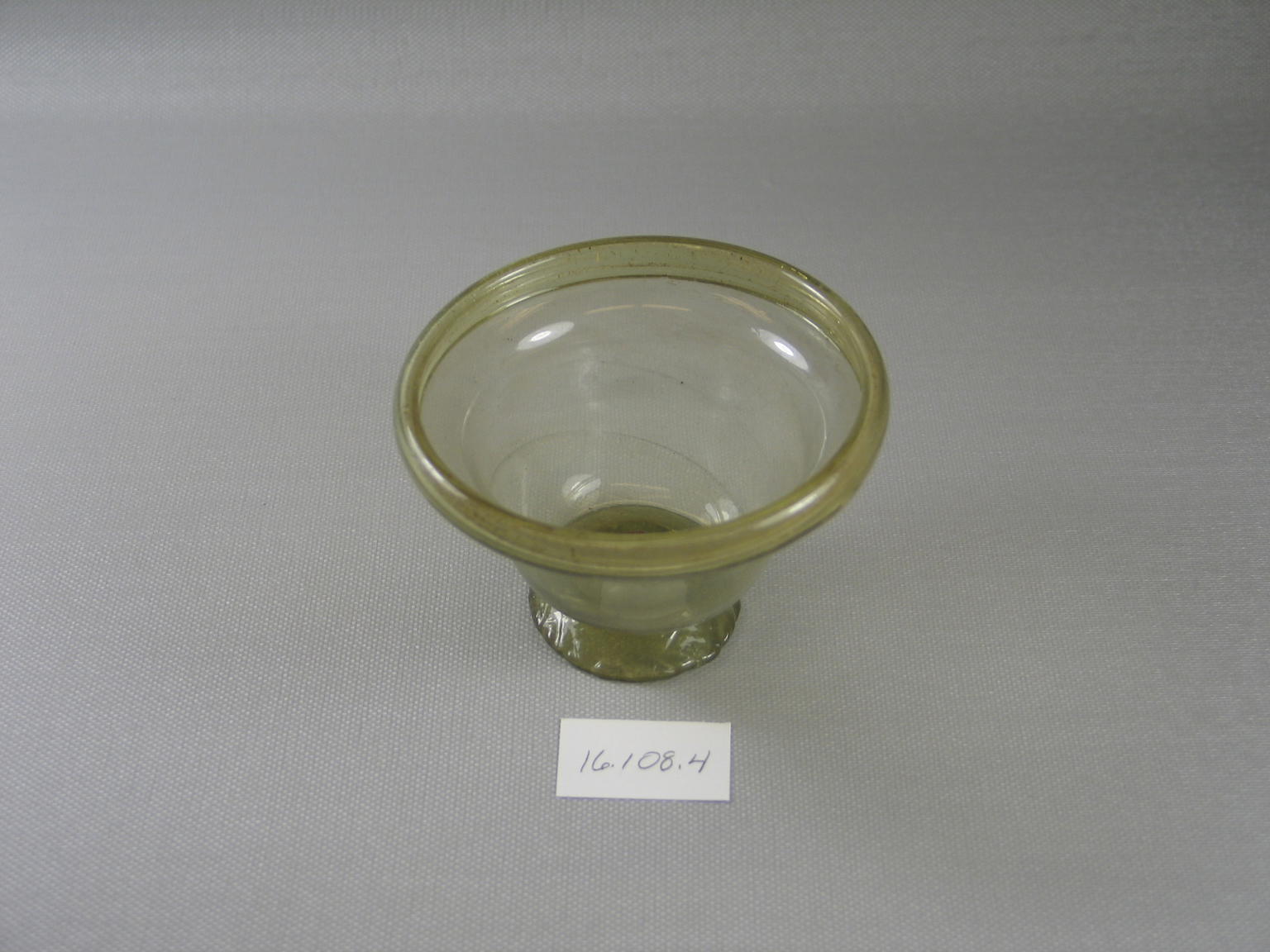 Egypto-Roman. Bowl, 4th century C.E.. Glass, 2 1/2 x Diam. 3 11/16 in. (6.3 x 9.3 cm). Brooklyn Museum, Gift of Evangeline Wilbour Blashfield, Theodora Wilbour, and Victor Wilbour honoring the wishes of their mother, Charlotte Beebe Wilbour, as a memorial to their father, Charles Edwin Wilbour, 16.108.4. (Photo: Brooklyn Museum)