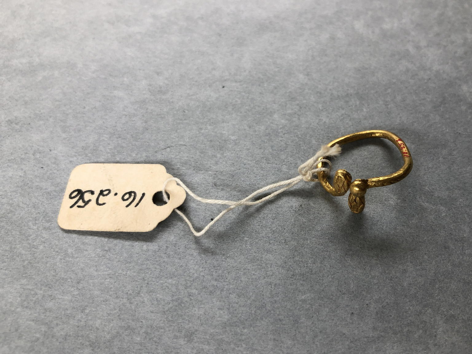 Finger Ring, 664–30 B.C.E.. Gold, 13/16 × 3/8 × 3/4 in. (2 × 1 × 1.9 cm). Brooklyn Museum, Gift of Evangeline Wilbour Blashfield, Theodora Wilbour, and Victor Wilbour honoring the wishes of their mother, Charlotte Beebe Wilbour, as a memorial to their father, Charles Edwin Wilbour, 16.256. (Photo: Brooklyn Museum)