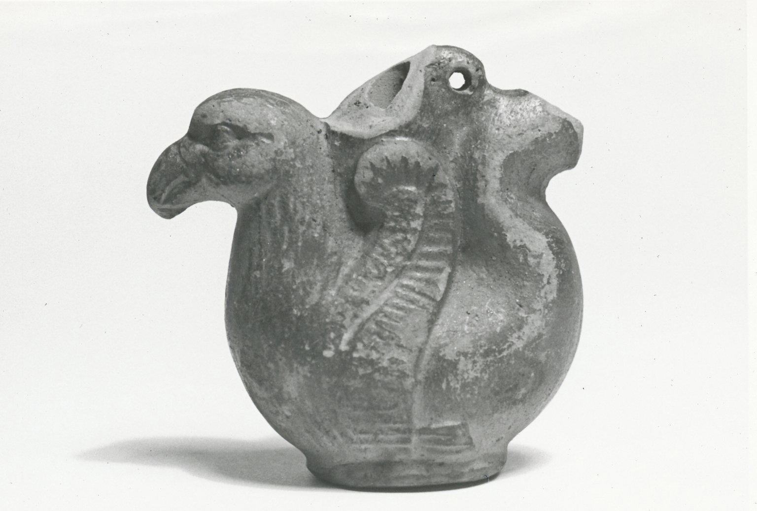 Coptic. Bird, 5th–7th century C.E. (possibly). Terracotta, 2 9/16 × 2 9/16 in. (6.5 × 6.5 cm). Brooklyn Museum, Gift of Evangeline Wilbour Blashfield, Theodora Wilbour, and Victor Wilbour honoring the wishes of their mother, Charlotte Beebe Wilbour, as a memorial to their father, Charles Edwin Wilbour, 16.263. (Photo: Brooklyn Museum (in collaboration with Index of Christian Art, Princeton University))