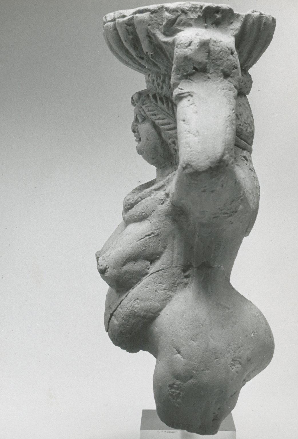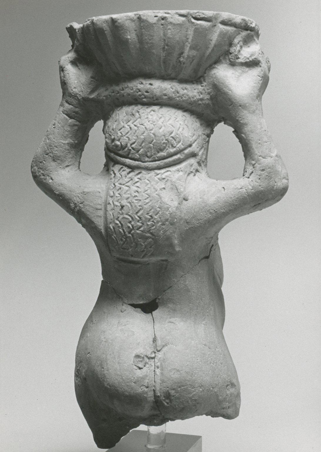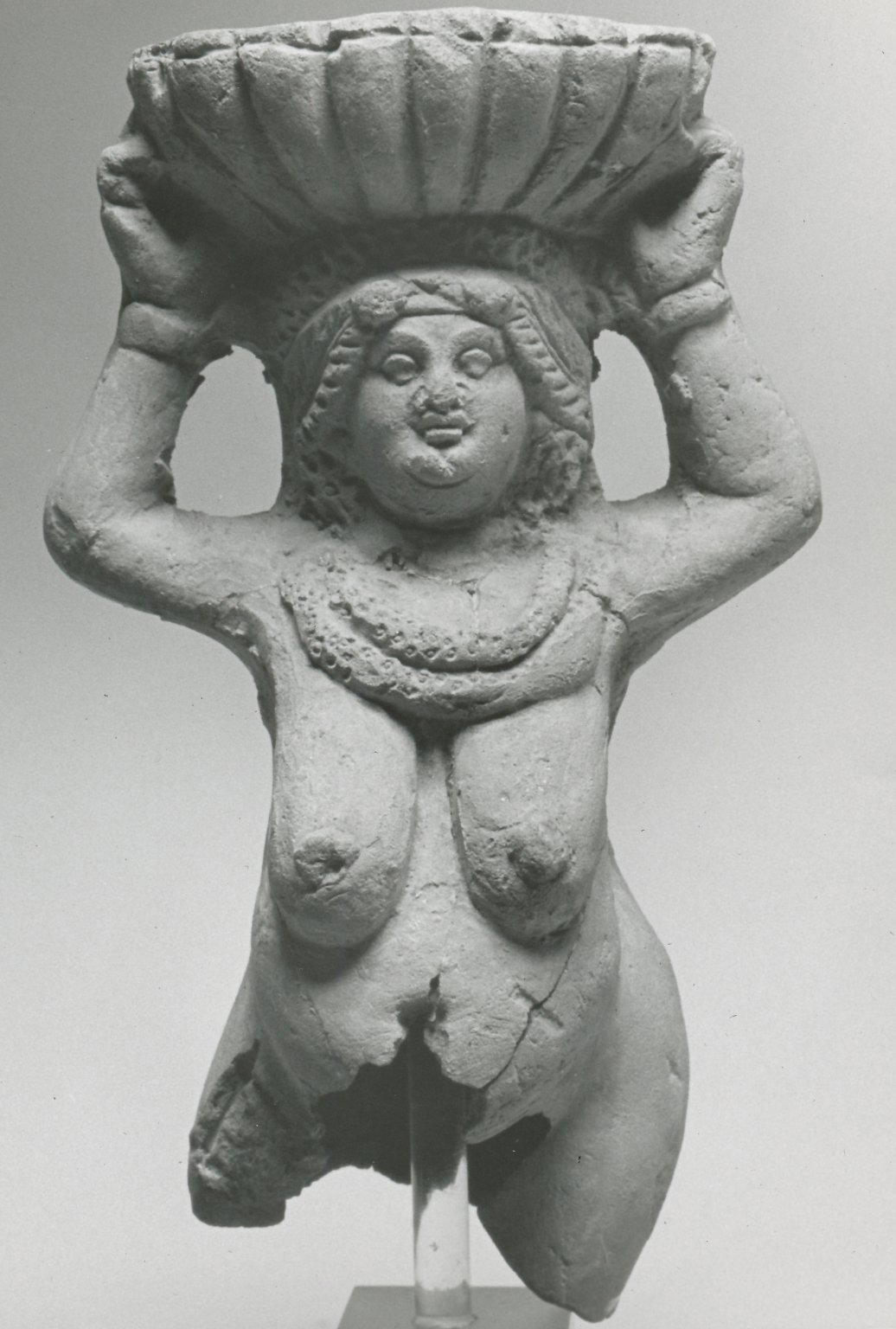 Fragmentary Statuette of a Woman, 3rd–4th century C.E.. Clay, 5 11/16 x 3 3/8 x 2 1/2 in. (14.4 x 8.5 x 6.4 cm). Brooklyn Museum, Gift of Evangeline Wilbour Blashfield, Theodora Wilbour, and Victor Wilbour honoring the wishes of their mother, Charlotte Beebe Wilbour, as a memorial to their father, Charles Edwin Wilbour, 16.266. (Photo: Brooklyn Museum)
