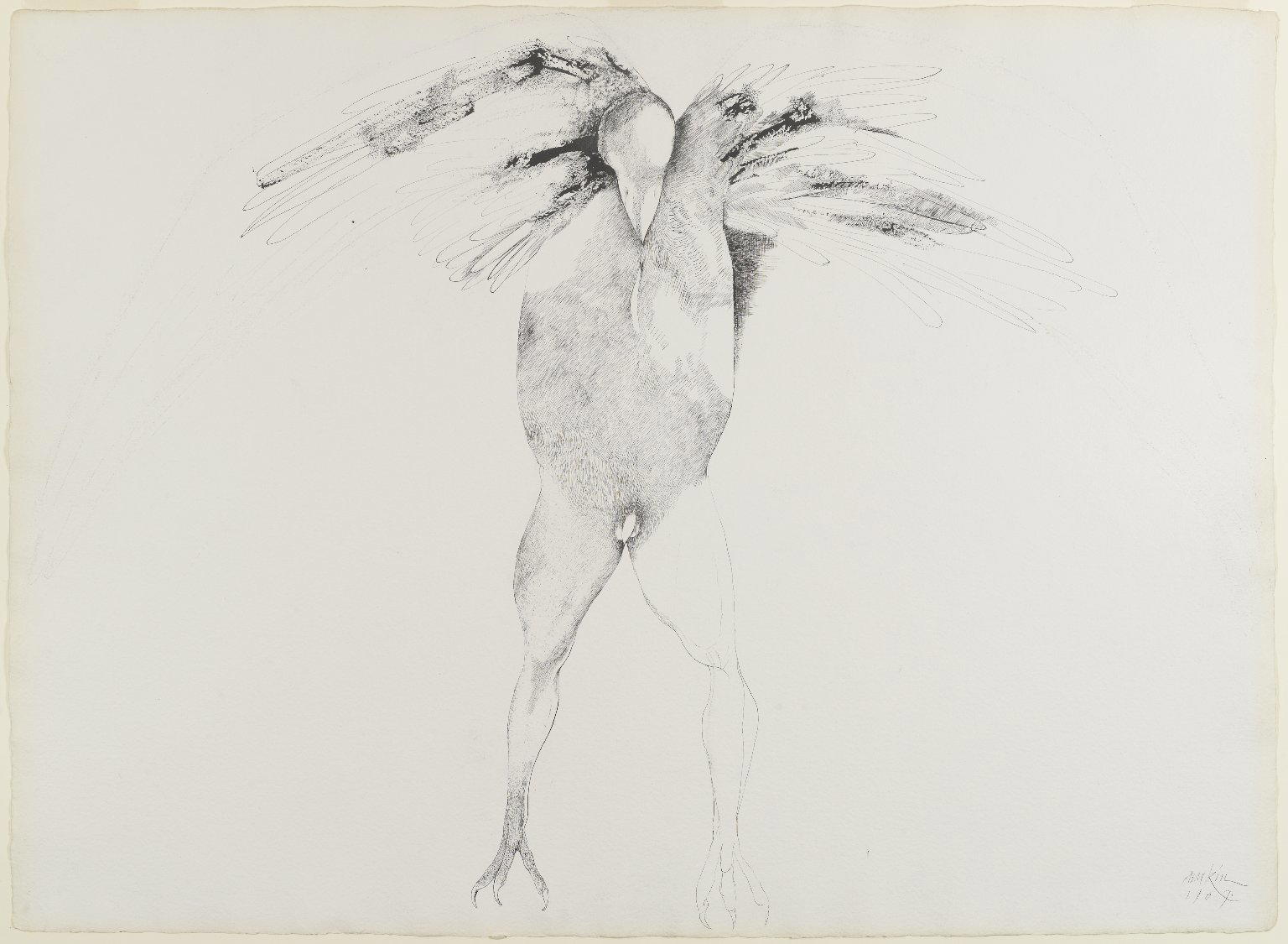 Leonard Baskin (American, 1922–2000). Mortification, 1967. Pen and ink on paper, 22 x 21 in. (55.9 x 53.3 cm). Brooklyn Museum, Gift of John E. Marqusee in honor of Estelle Unger, 70.14. © Estate of Leonard Baskin, Courtesy Galerie St. Etienne, New York. (Photo: Brooklyn Museum)