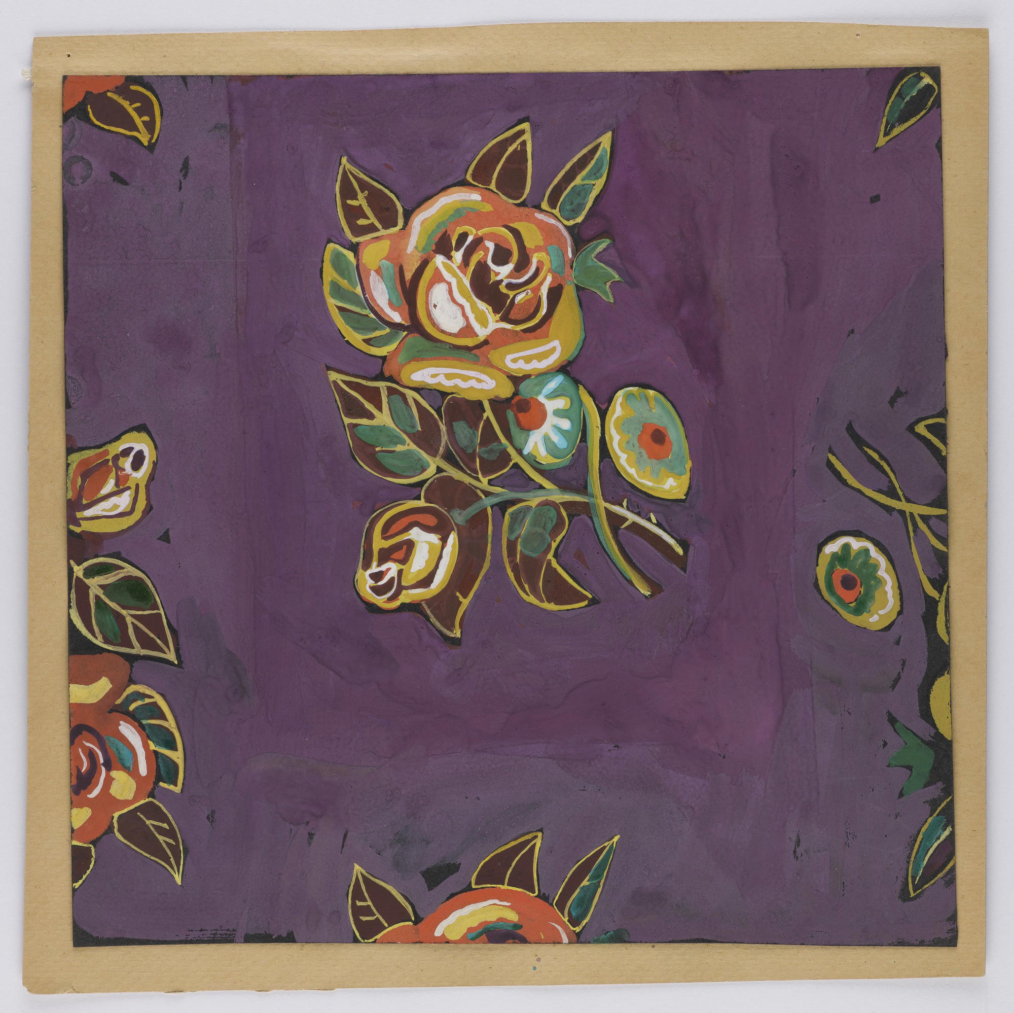 Marguerite Thompson Zorach (American, 1887–1968). (Flowers on purple background - many colored), 20th century. Watercolor on paper mounted to backing paper, Sheet (watercolor): 9 9/16 x 9 11/16 in. (24.3 x 24.6 cm) Sheet (backing paper): 10 1/2 x 10 9/16 in. (26.7 x 26.8 cm). Brooklyn Museum, Gift of Mr. and Mrs. Tessim Zorach, 70.35.2. © Estate of Marguerite Thompson Zorach. (Photo: Brooklyn Museum)