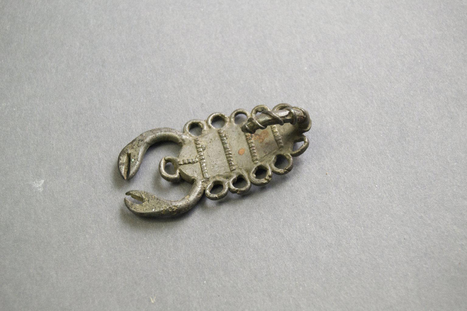 Akan. Gold-weight (abrammuo): scorpion, late 19th–early 20th century. Silver, 2 1/4 in. (5.7 cm). Brooklyn Museum, Gift of Jerome Furman, 70.106.6. (Photo: Brooklyn Museum)