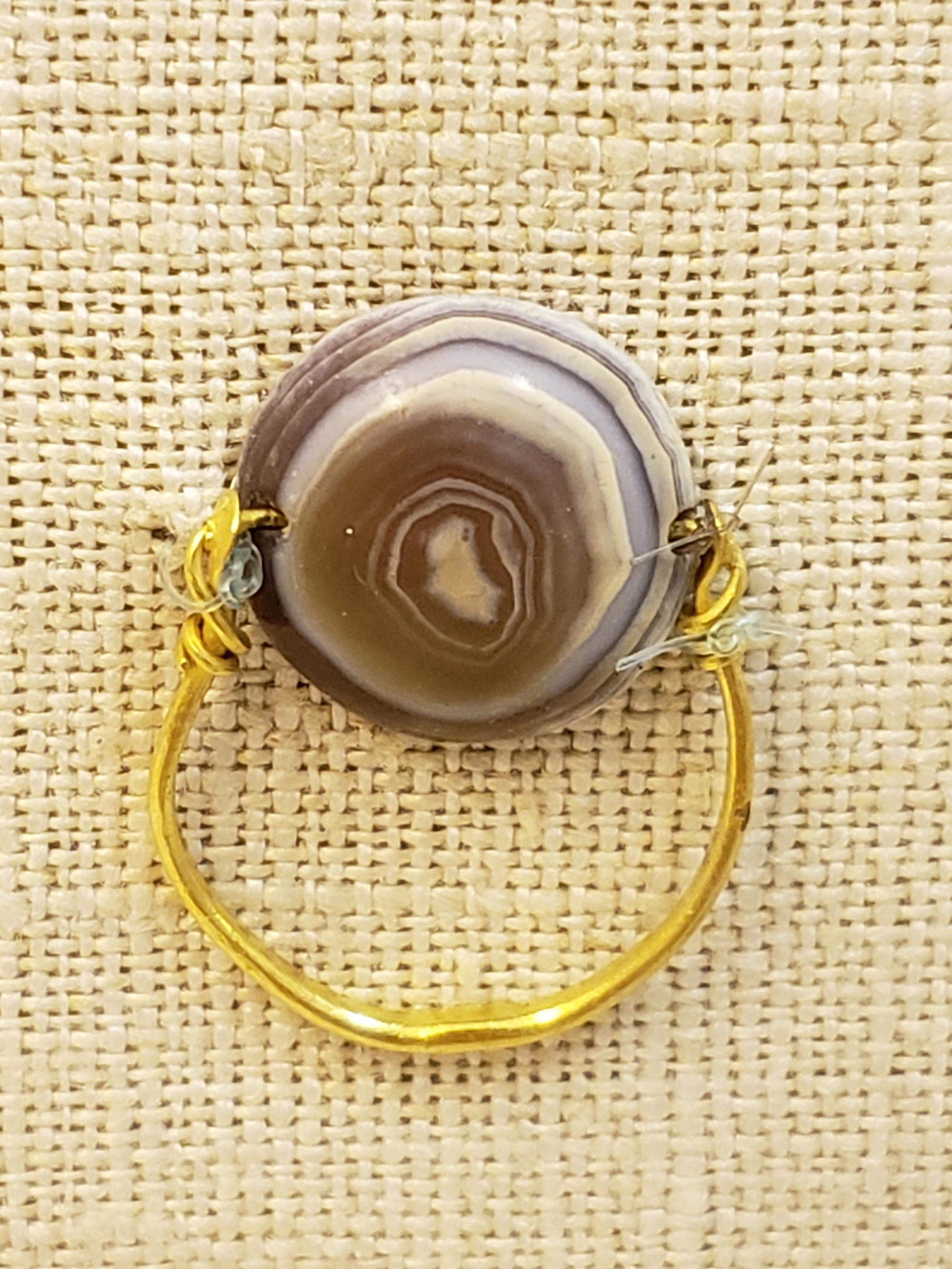 Greek. Hoop Ring with Stone Set in Swivel Base, late 4th century B.C.E.. Gold, agate, 11/16 x 5/8 in. (1.8 x 1.6 cm) Stone: 3/16 x 1/2 in. (0.4 x 1.2 cm). Brooklyn Museum, Gift of Mr. and Mrs. Thomas S. Brush, 71.79.20. (Photo: Brooklyn Museum)
