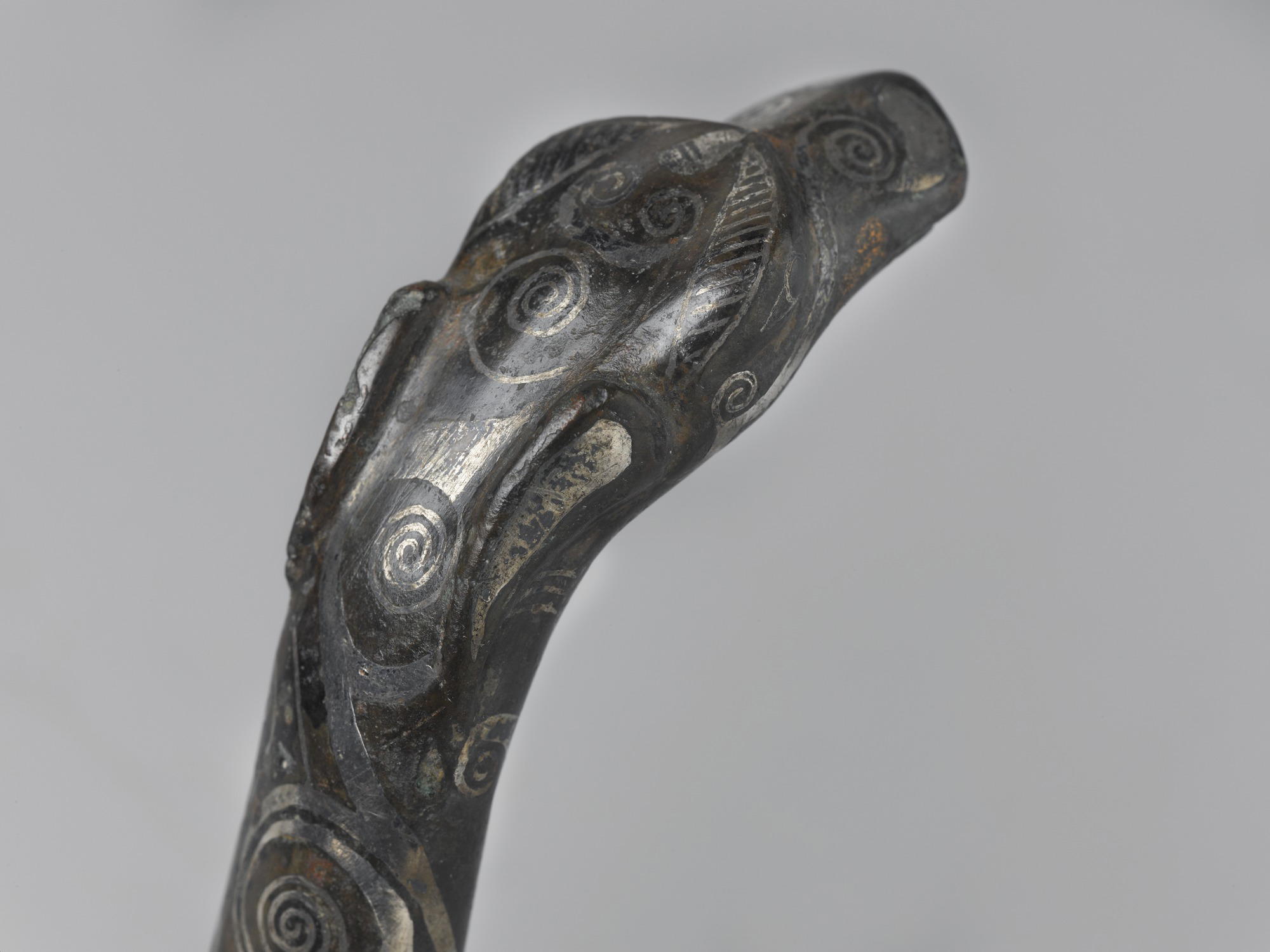Pair of Crossbow Mounts, 770–256 B.C.E.. Bronze, inlaid with silver, 7 3/4 x 3 1/4 in. (19.7 x 8.3 cm). Brooklyn Museum, Gift of Mr. and Mrs. Alastair B. Martin, the Guennol Collection, 71.118.1a-b. (Photo: Brooklyn Museum)