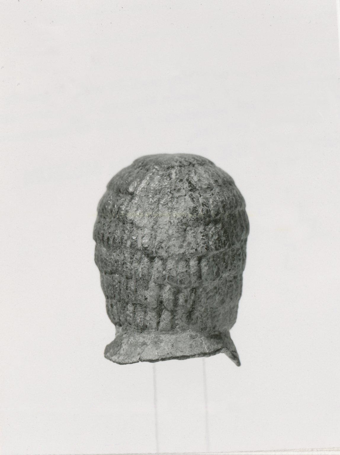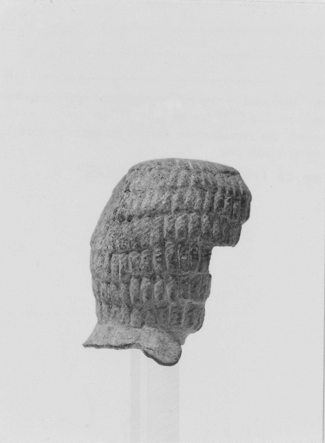 Wig from a Statue, ca. 800 B.C.E.. Bronze, 3 × 2 3/16 × 2 5/16 in. (7.6 × 5.5 × 5.8 cm). Brooklyn Museum, Gift of Christos G. Bastis, 73.27. (Photo: Brooklyn Museum)